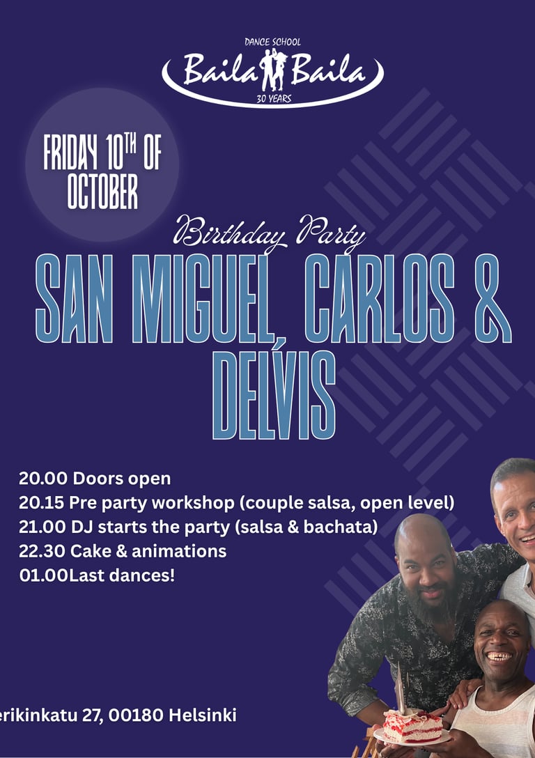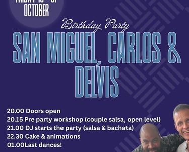 Welcome to celebrate the birthday of our dear teachers San Miguel & Carlos + our beloved camera man Delvis on Friday 10th of October (in 2 weeks!)!🤩🥳😍
